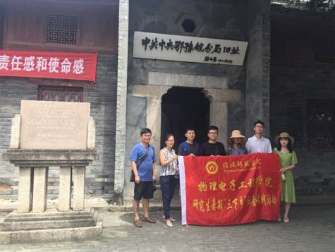 为深入学习贯彻习近平新时代中国特色社会主义思想,根据学校研究生处和电子博彩导航 安排,由电子博彩导航 教工第二党支部书记刘墨林、研究生秘书张超带领的2019年研究生暑期“三下乡”社会实践团队一行8人于7月1日前往信阳市新县鄂豫皖苏区首府革命博物馆开展社会实践活动,追忆革命历史,践行时代精神。