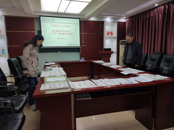 11月17日下午,在理科楼南楼501会议室举行教育硕士“三字”教学基本功竞赛。邀请多名专家担任本次活动的评委老师。最终评出李立宝获一等奖并参加学校决赛,樊梦珂等4名同学获二等奖,杨玉珊等6名同学获三等奖。