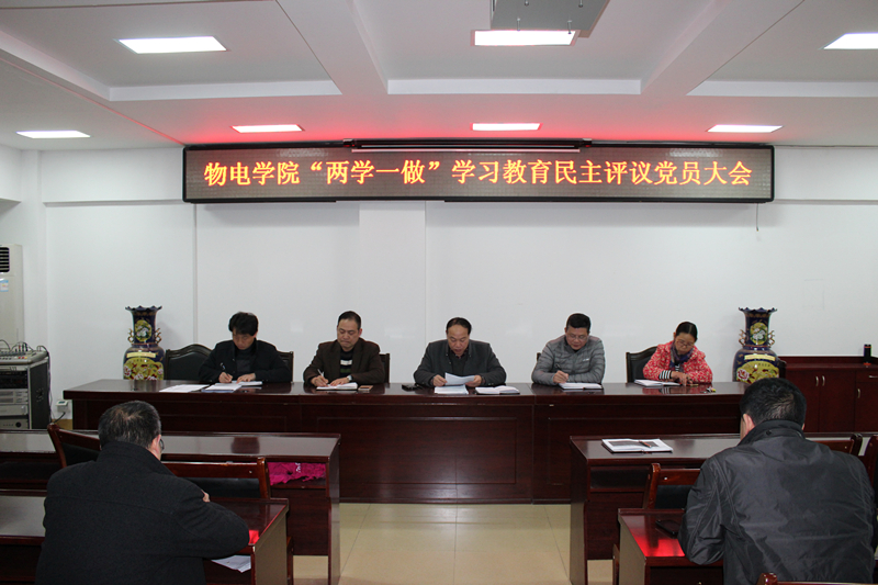 3月15日,物电电子博彩导航 “两学一做”学习教育民主评议党员大会在理科楼511会议室举行。电子博彩导航 党委书记柳士刚、副书记李刚、副院长孙宜海、仓玉萍及全体教工党员参加了会议。会议由柳士刚主持。