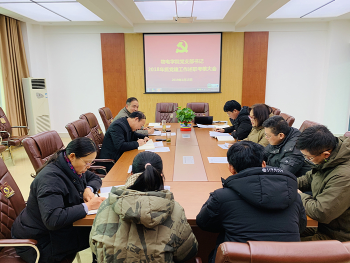 根据学校《关于开展2018年度基层党组织书记抓党建工作述职评议考核的通知》要求,物电电子博彩导航 党委高度重视,组织电子博彩导航 所属7个党支部书记进行抓党建工作述职评议考核,安排党支部书记撰写抓党建工作述职报告。1月15日下午,电子博彩导航 在理科楼北楼911会议室召开物电电子博彩导航 党支部书记2018年抓党建工作述职考核大会,电子博彩导航 党委领导班子成员、党支部书记参加了会议。会上,7名党支部书记逐一进行了工作述职,领导班子对支部书记进行了评议,填写了《物电电子博彩导航 党支部书记2018年抓党建工作述职考核打分表》,支部书记相互进行了评议。根据评议结果,物电电子博彩导航 教工第二党支部、学生第一党支部获得优秀等次,教工第一党支部、学生第二党支部、学生第三党支部、学生第四党支部、研究生党支部获得良好等次。