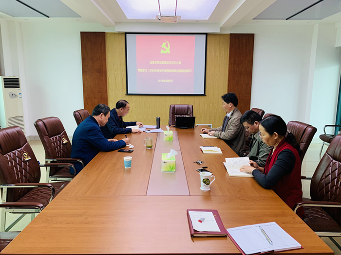 4月9日下午,物电电子博彩导航 党委理论学习中心组在理科楼北楼911会议室专题学习《中共中央关于加强党的政治建设的意见》。电子博彩导航 党委书记柳士刚主持学习会,电子博彩导航 党委理论学习中心组成员参加了会议。