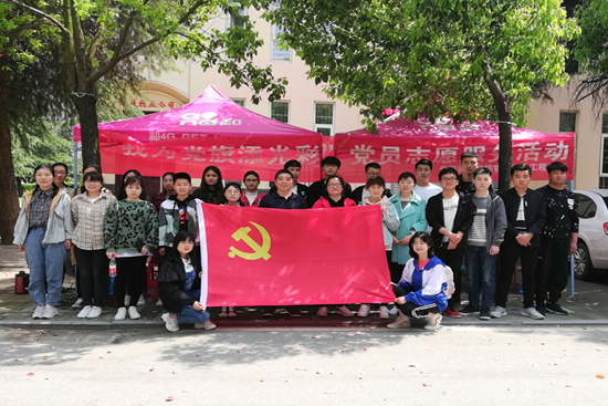 第31期党员发展对象及电子信息技术协会部分成员前往信阳市浉河区三五八社区开展“我为党旗添光彩”主题党员志愿服务活动,李长庚老师到往现场给予技术指导。