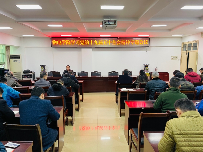 11月24日,电子博彩导航 在理科楼511会议室召开学习党的十九届五中全会精神专题会议,电子博彩导航 领导班子、全体教职工参加了专题学习。