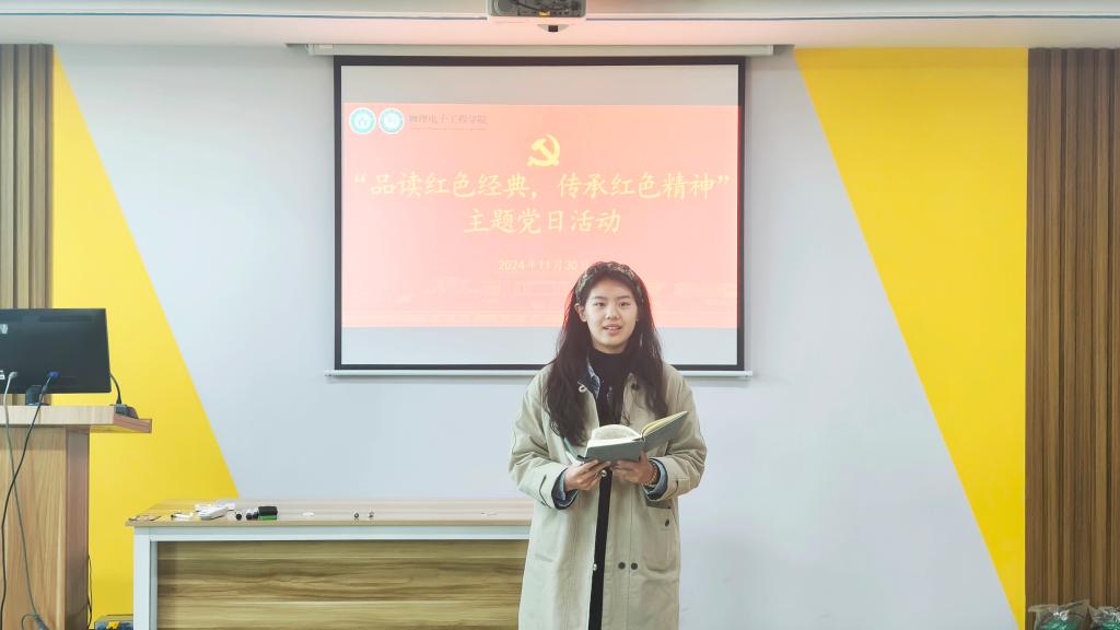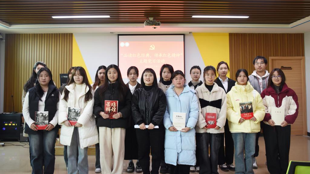 活动最后,牛文娟给与会的同学赠送了红色书籍,并做了题为“学习全会精神,做新时代青年”的党课。她指出,此次读书活动是一次心灵洗礼和精神升华的主题党日、主题团日活动,是党建带团建,团建促党建的具体实践,希望同学们以党的二十届三中全会精神为指引,主动品味经典、坚定信念,多读好书、勤于行动,加强学习、积极实践,担当作为、勇于创新,努力在为实现中华民族伟大复兴中做出自己的贡献。