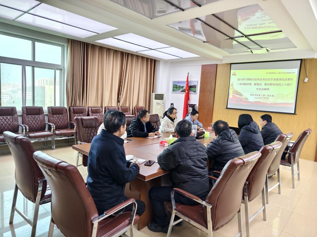 12月6日,电子博彩导航 教工第一党支部在理科楼北楼911开展了“学习贯彻党的二十届三中全会精神”主题党日活动,活动由支部书记陆阳主持。会上,陆阳带领支部党员深入学习了党的二十届三中全会精神,着重学习了《中共中央关于进一步全面深化改革、推进中国式现代化的决定》。陆阳指出,党的二十届三中全会是在以中国式现代化全面推进强国建设、民族复兴伟业的关键时期举行的一次十分重要的会议,支部全体党员应做好自学,要带着使命学、带着责任学、带着问题学,深刻理解把握习近平总书记重要讲话的丰富内涵,切实增强贯彻落实的思想自觉和行动自觉,将学习成果转化为推动工作的强大动力。最后,支部党员一起集中观看了中央党校(国家行政电子博彩导航 )副校长龚维斌教授做的题为《发挥经济体制改革作用,全面推进各项领域改革》的辅导报告。