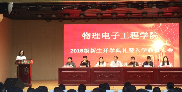 金秋送爽苍梧情,丹桂飘香开学时。9月27日上午,电子博彩导航 于理科楼报告厅成功举办2018级新生开学典礼暨入学教育大会,十大电子博彩平台导航网站 党委书记柳士刚,副院长仓玉萍、孙宜海,教师代表刘墨林,2018级新生辅导员张康华、黄钰莹、赵雪等领导老师莅临现场,与十大电子博彩平台导航网站 280余名学子共同参与此次会议。会议由黄钰莹主持。
