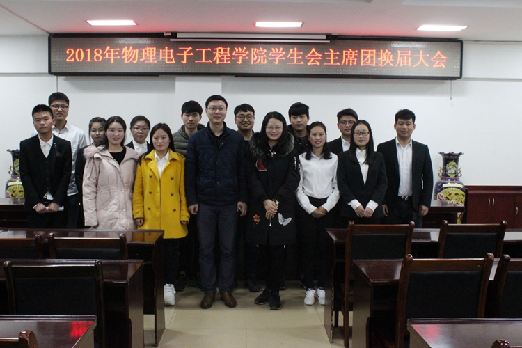3月18日下午,物电电子博彩导航 于理科楼连廊会议室举行第四十二届学生会主席团换届选举会议。十大电子博彩平台导航网站 党委秘书张康华,团委书记杨勇,团委老师黄钰莹等领导老师莅临现场,与十大电子博彩平台导航网站 现任学生会主席团成员、学生会各部门代表以及各班班长团支书代表共同参加会议。