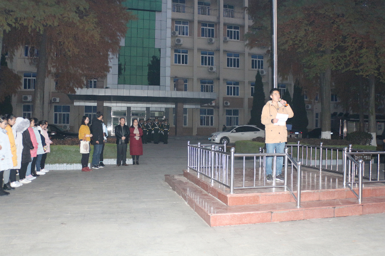 伴随庄严肃穆的国歌,鲜艳的五星红旗冉冉升起,在场师生奏唱国歌,全体肃立,行注目礼。学生代表2017级新能源班班长石金钊发言。他以“什么是道德准则”为切入点,分享参与此次活动的感悟,号召同学们严于律己、求实创新,时刻注意自身道德行为,争做建设社会主义合格接班人。