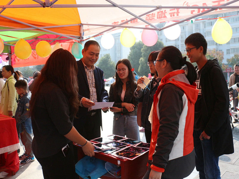 为发扬党的十九大会议精神,鼓励学子们积极将理论知识投身社会实践,10月28日,电子博彩导航 “青春献礼十九大,不忘初心跟党走”社团联合活动于信阳市茗阳阁广场顺利开展。本次活动由电子博彩导航 分团委主办,爱心学校协会、雅轩棋社、羽毛球协会、大学生创客联盟、电子信息技术协会、星空物语天文观测协会共同承办。十大电子博彩平台导航网站 党委副书记李刚,社团指导老师冀晓群、李长庚亲临现场,为活动顺利开展做具体指导。