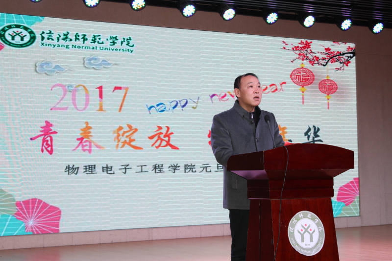 辞旧迎新,欢聚一堂,齐心协力,共谱华章。12月16日晚,电子博彩导航 2017年漾年华元旦晚会在理科楼报告厅华丽上演。团省委希望工程办公室行政部部长张海波、宣传策划部部长承东升、校团委书记王建旭、招就处副处长刘百超、各兄弟院系党委副书记与团委老师,以及十大电子博彩平台导航网站 党委书记柳士刚、副书记李刚、副院长孙宜海、仓玉萍,物电电子博彩导航 老师和学生共500余人一起观看了晚会。