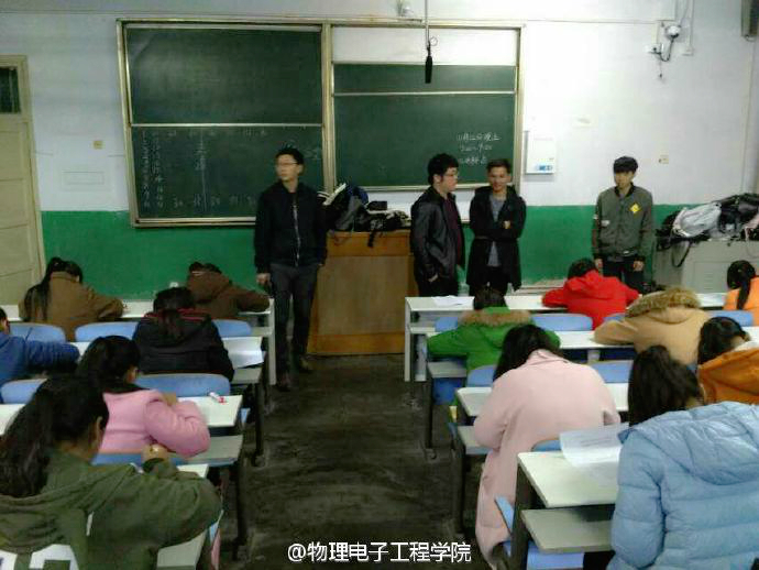 在教二、教三组织2016级全体新生参加校规校纪考试,张康华老师、杨勇老师以及学生会主席团成员参与巡考工作。
