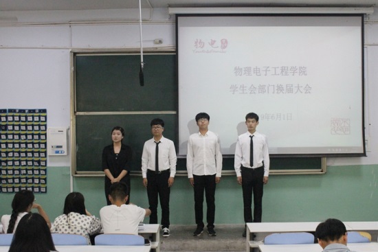 6月1日下午,十大电子博彩平台导航网站 学生会部门换届大会于教二梯一教室顺利举办。十大电子博彩平台导航网站 团委老师黄钰莹出席现场,与学生会第42届主席团部分成员、第43届主席团全体成员、各部门部长、副部长及参与竞选干事共同参加此次换届大会。