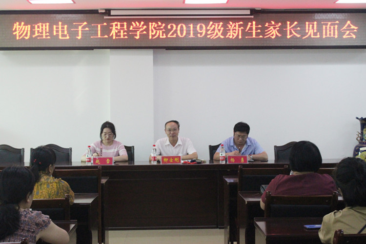 为增进家校联结,构建家校联动教育机制,9月7日下午,电子博彩导航 于理科楼连廊511会议室顺利举行2019级新生家长见面会。十大电子博彩平台导航网站 党委书记柳士刚,2019级新生班主任杨勇、赵雪莅临现场,与在场70余名家长及学生共同参与此次会议。