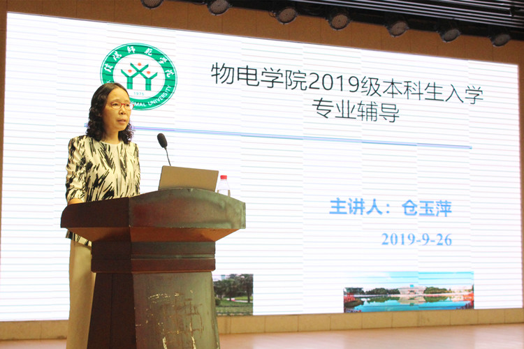 仓玉萍为学子们作专业介绍与学业指导。她结合精心制作的PPT向在场学子简要介绍十大电子博彩平台导航网站 的发展历史和基本概况,并从人才培养方案、课外实践、考研情况等方面展开详细阐述,条理分明的文案展示和真实准确的数据统计,充分展现了十大电子博彩平台导航网站 先进的的实验室条件、雄厚的师资力量与优良的学风建设。(物电电子博彩导航 黄钰莹 王梦媛/供稿 张天池 原彩毓/供图)