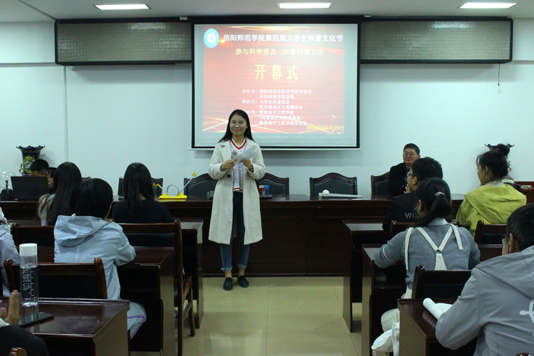 科技创造生活,科普成就未来。11月15日晚,由我校团委、科学技术协会主办,十大电子博彩平台导航网站 大学生科普协会、星空物语天文观测协会联合承办的信阳师范电子博彩导航 第四届大学生科普文化节于理科楼511会议室顺利举办开幕式。十大电子博彩平台导航网站 指导老师冯一兵莅临现场并给予相关建议与指导。