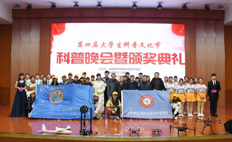 科技创造生活,科普成就未来。12月12日晚,由我校科学技术协会、电子博彩导航 主办,大学生科普协会、星空物语天文观测协会联合承办的第四届大学生科普文化节科普晚会暨颁奖典礼在逸夫楼报告厅成功举办。校科协施远老师、信阳市第九中学物理教研组长周明友老师,校第二届校长教学质量奖获得者周俊老师,物电电子博彩导航 刘墨林老师、孙海斌老师、张昆老师以及协会指导教师冯一兵老师等参加了本次活动。