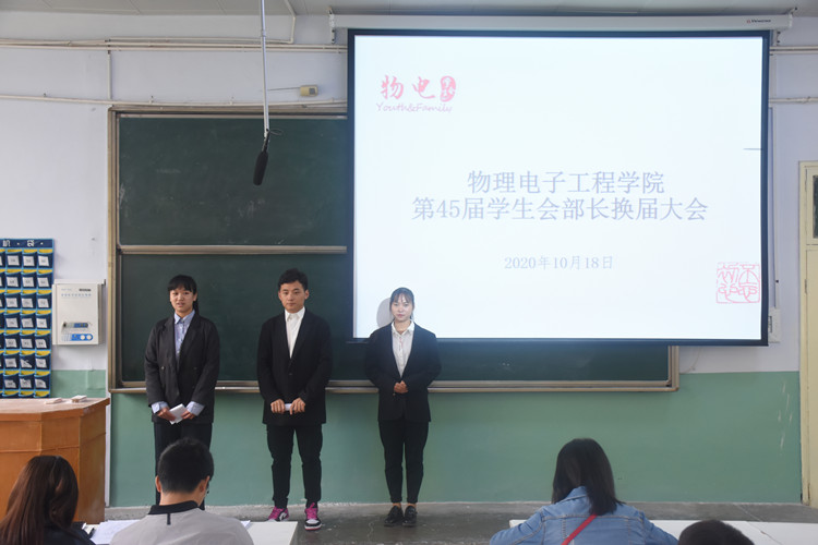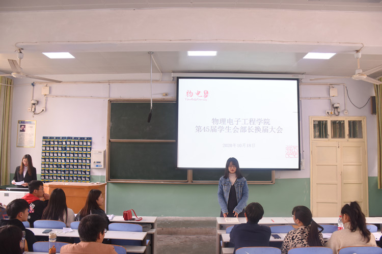第45届学生会部长换届大会于教二梯一顺利召开。团委老师黄钰莹,主席团成员以及各部门部长出席此次大会。会议由办公室主任薄伟主持。