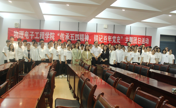 为加强爱国主义教育,弘扬民族精神,5月12日下午十大电子博彩平台导航网站 于理科楼四楼会议室举办“传承五四精神,铭记百年党史”主题团日活动。校团委宣传部部长雷玲应邀出席活动。物电电子博彩导航 党委副书记李刚、团委老师牛文娟、化工化学电子博彩导航 团委副书记邓雪婉以及20级物理学一班全体同学共同参加了活动。此次活动由物电电子博彩导航 团委副书记李诗吟主持,班级团支部书记韩文琪主讲。