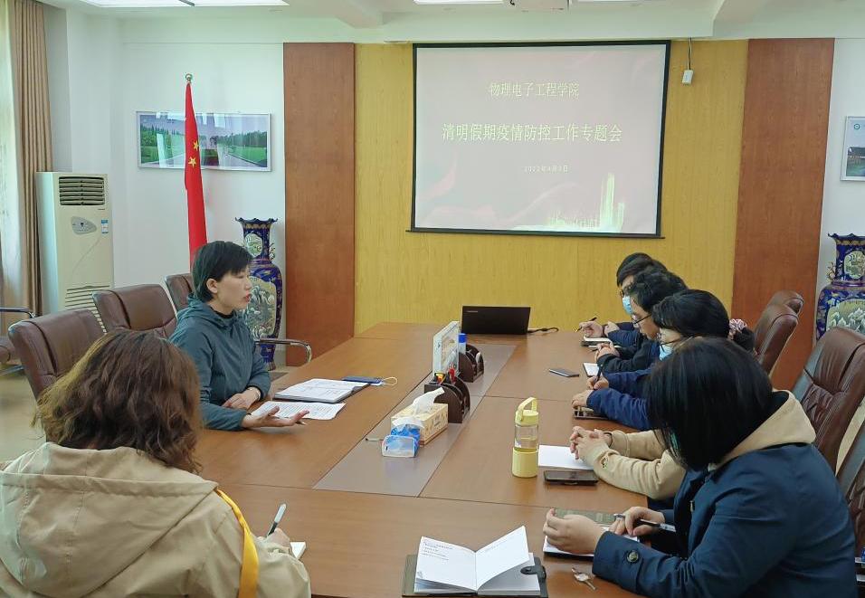 强化正面宣导,落实“六会一走访”。4月3日,十大电子博彩平台导航网站 在理科楼911会议室召开清明节假期疫情防控工作专题会。会上,党委副书记张丽对各位班主任在近期疫情防控工作中的辛勤付出给予充分肯定,同时强调清明假期要持续做好疫情防控工作,通过“六会一走访”实现横向到边、纵向到底、上下联动、内外衔接,让思想教育、疫情防控政策传达不留死角,全面筑牢校园疫情防控坚固防线。