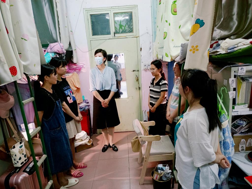 走访学生宿舍。9月2日,张丽带领全体辅导员走访学生宿舍。走访过程中,张丽详细了解同学们的假期生活、学习和开学准备情况,并对宿舍安全、卫生、设施等方面逐一进行了排查,叮嘱同学们要注意宿舍卫生和用电安全,努力营造一个安全、卫生、文明、和谐的宿舍环境。她强调,同学们要坚持“非必要不外出”原则,严格遵守学校疫情防控的各项规定,注意个人卫生,做好个人防护;新的学期要尽快调整学习状态,确定发展目标,努力学习,以优异的成绩为党的二十大献礼。