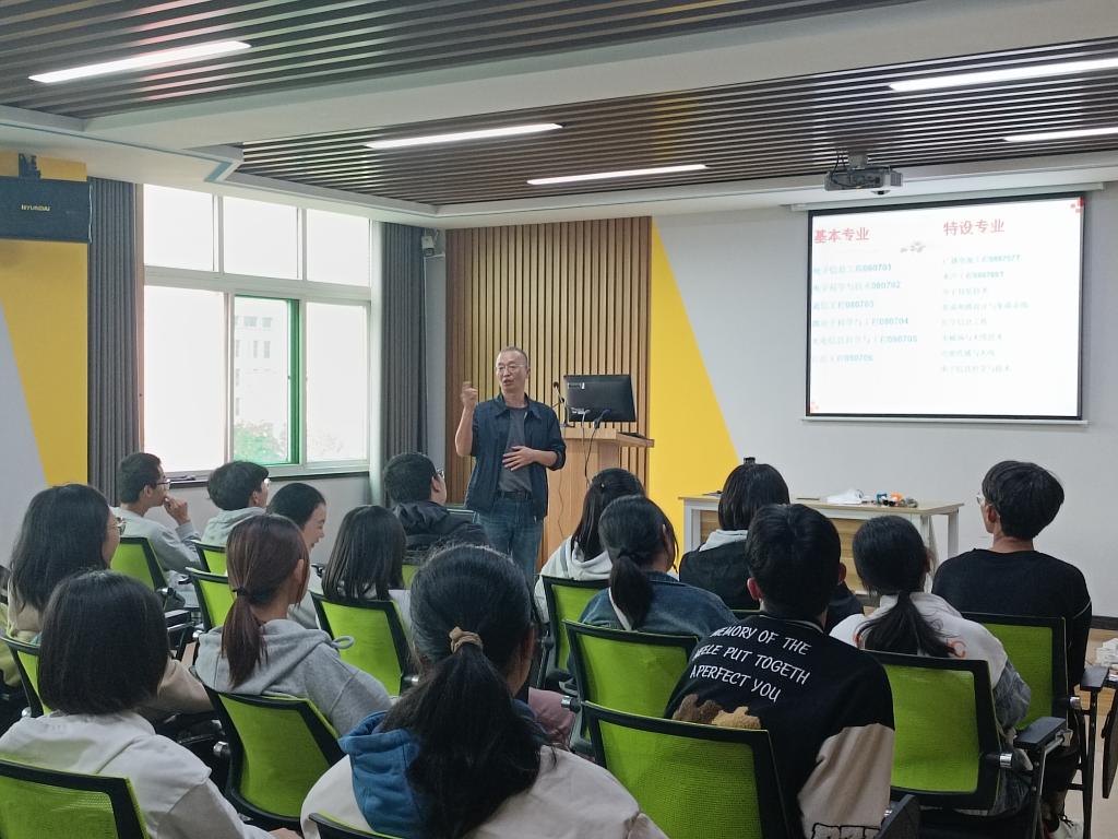 为提高新生专业素养,增强专业认知。10月10日,十大电子博彩平台导航网站 在507会议室举行专业思想教育,此次讲座由郭建涛老师主讲,2023级电子科学与技术班全体同学参与。