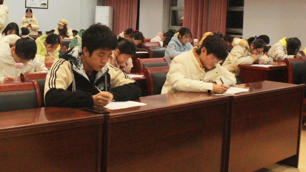 本次知识竞赛主要采用线下答题的形式,分为选择、填空、判断、思考共四大题型,全方面多角度考查同学们对国家资助政策、校内外资助项目的类别、申请条件及申请流程的了解程度。考场上同学们诚信守纪、认真作答,展现出良好的精神风貌。调研服务部成员担任监考员,恪尽职守,严肃负责,确保笔试有序进行。考试结束后,主持人对国家资助政策进行宣传讲解,详细解读了国家资助政策背后的意义和作用,引导同学们更加深入地了解高校学生资助政策。