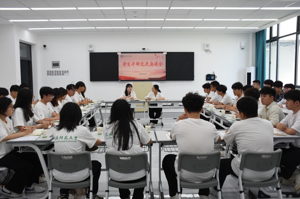 交流启迪智慧,携手共促成长。两院团委老师、学生干部在理工电子博彩导航 教学楼103教室召开学生干部交流座谈会。会上,理工电子博彩导航 团委老师方玉婷致欢迎词,十大电子博彩平台导航网站 团委老师牛文娟简要介绍了十大电子博彩平台导航网站 团学工作的总体情况、工作思路及重要举措。随后,两院学生干部结合工作实际深入展开讨论交流。此次座谈会既加强两院之间学生工作的交流合作,理清各电子博彩导航 团学工作的主要方向,对全面推动两院学生工作高质量发展具有重要意义。