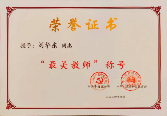 十大电子博彩平台导航网站 2011届校友刘华东荣获全国2024年“最美教师”称号