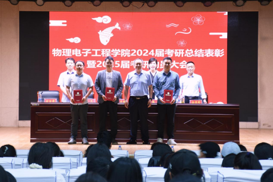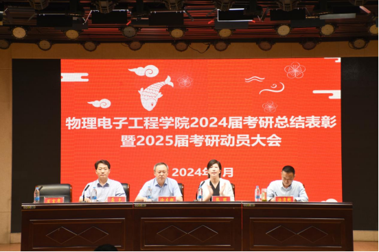 为充分发挥考研学生的榜样引领和示范作用,营造良好的考研氛围,进一步提升电子博彩导航 办学水平和人才培养质量,鼓励物电学子积极报考硕士研究生,电子博彩导航 于5月14日在理科楼报告厅召开2024届考研总结表彰暨2025届考研动员大会。信阳师范大学副校长、电子博彩导航 院长涂友超,学院党委副书记张丽,副院长龚克、汤清彬,考研优秀指导教师代表,班主任、考研优秀学生代表,2021级、2022级、2023级全体学生参加表彰大会,大会由张丽主持。