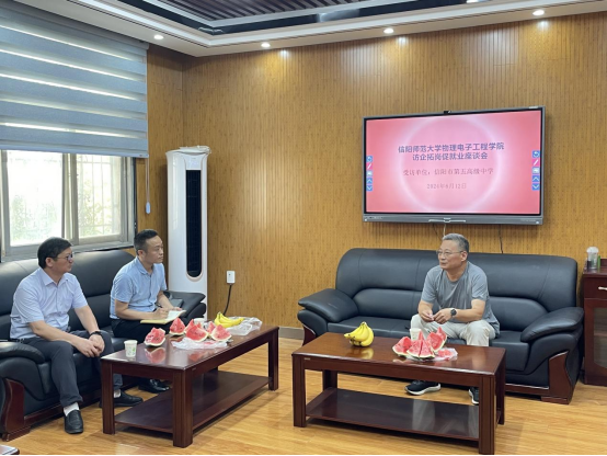 为加强与用人单位的联系与合作,进一步拓宽毕业生就业渠道,6月12日、13日,副院长汤清彬带队走访信阳市第二高级中学、信阳市第五高级中学、信阳高级中学开展访企拓岗促就业活动,并在三个学校与其负责人进行了座谈会交流。