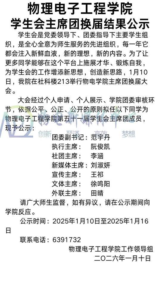 电子博彩导航 学生会主席团换届结果公示