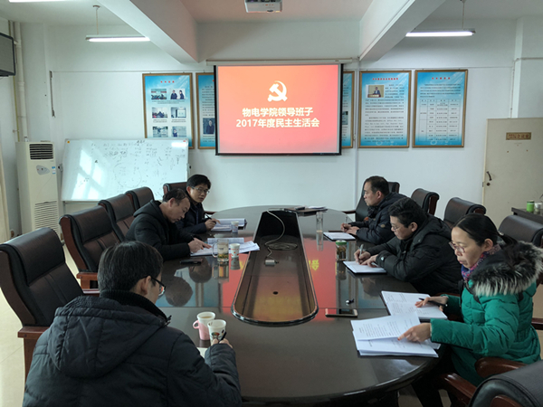 根据《关于开好2017年度县以上党和国家机关党员干部民主生活会的通知》文件精神和学校要求,1月26日,物电电子博彩导航 领导班子以“认真学习领会习近平新时代中国特色社会主义思想,坚定维护以习近平同志为核心的党中央权威和集中统一领导,全面贯彻落实党的十九大各项决策部署”为主题,召开了领导班子2017年度民主生活会。学校党委办公室副主任房加帅、科长丁其科出席并全程指导了民主生活会,电子博彩导航 全体领导班子成员参加会议。会议由电子博彩导航 党委书记柳士刚主持。
