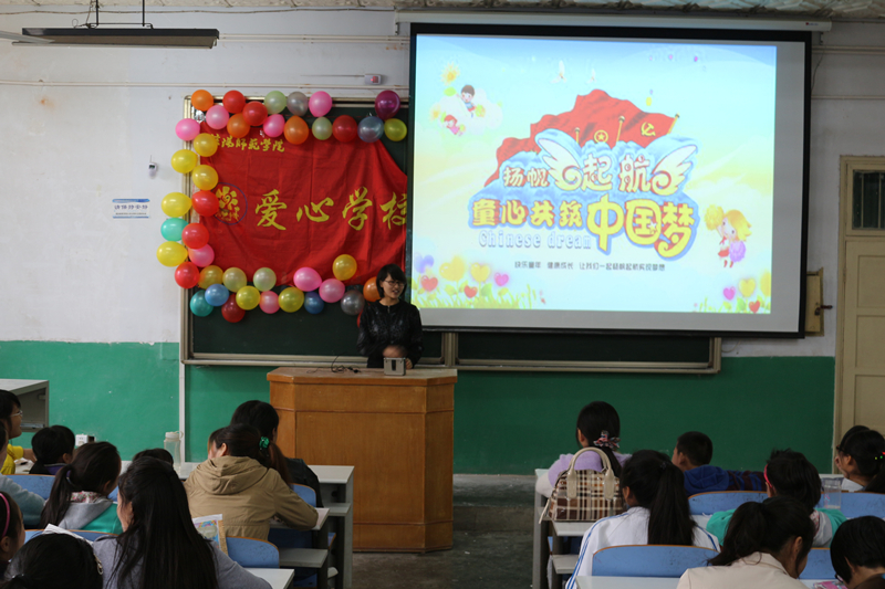 为贯彻响应党的十八大精神,助力“中国梦”的实现,4月26日,十大电子博彩平台导航网站 爱心学校在教二梯一举行了以关爱留守儿童为主题的义务辅导活动。活动共持续了两个小时,孩子们在爱心老师的带领下度过了一个愉快的下午。
