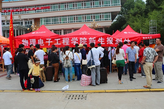 为使迎新接待工作顺利进行,十大电子博彩平台导航网站 提前做出了准备。在迎新期间,十大电子博彩平台导航网站 秉承“全心全意为新生服务”的宗旨,热情大方、认真细致的工作态度,为新生营造热烈、有序、温馨的入学氛围。校图书馆前,工作人员认真办理各项报到手续,仔细进行新生入学资格审查并带领新生办理入学手续。十大电子博彩平台导航网站 领导、老师也亲临迎新现场为新生及家长解疑答惑。大二、大三学生组成志愿者团队帮助新生提行李,讲解校园情况,使之更快更好地融入到大学生活中。为保证每一位家庭困难学生顺利入学,信阳师范电子博彩导航 本着“以人为本”的办学宗旨,在图书馆前新生报到处设立绿色通道咨询点,为贫困学生排忧解难。“绿色通道”作为新生入学的首要资助方式,为学生打开了一扇绿色的大门。