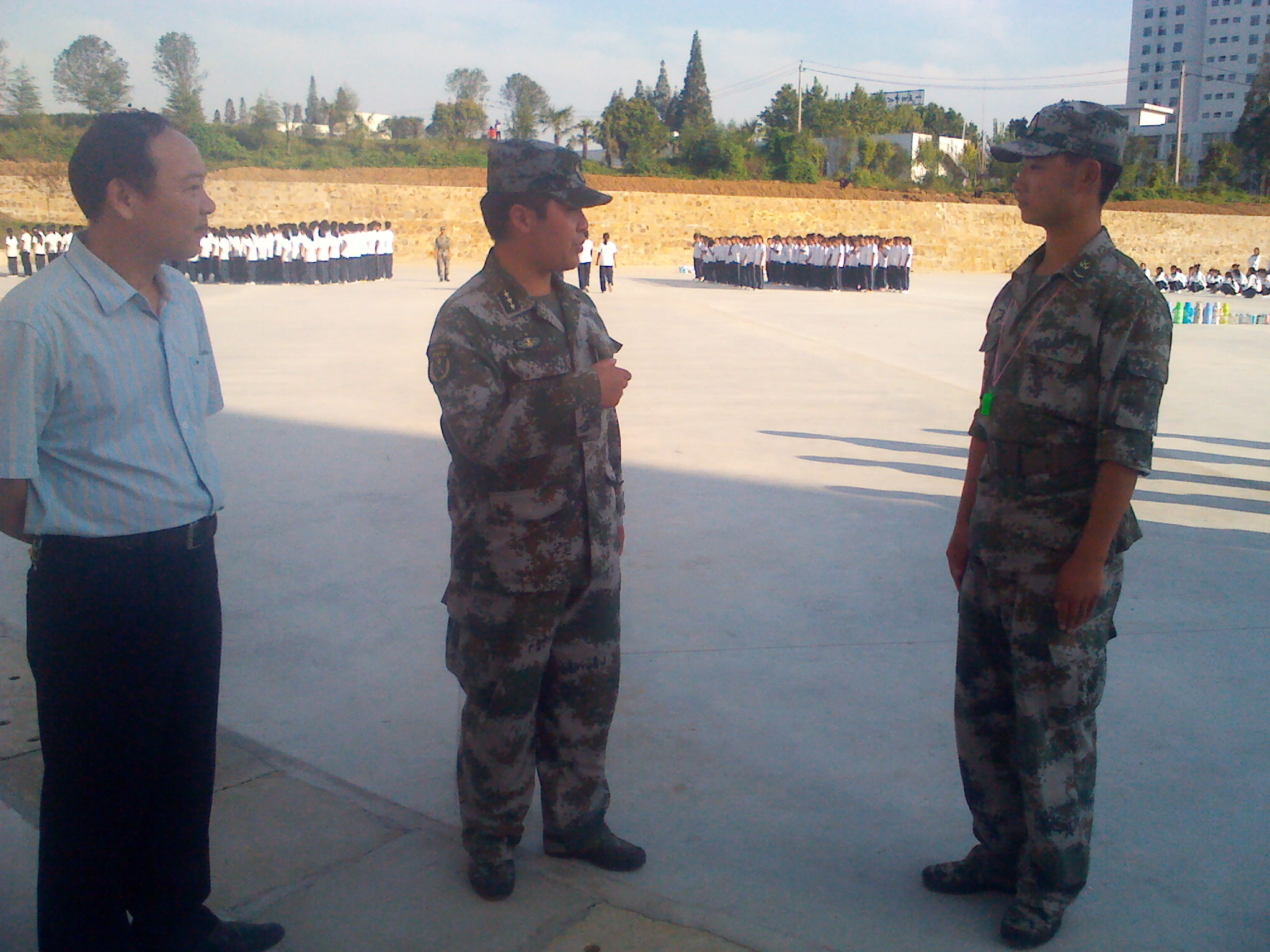 新生军训现场,首先,从新生的精神风貌、动作标准程度等几个方面考察了新生的训练情况。在视察的过程中,柳处长和教官们进行亲切交谈,了解新生训练的相关安排,同大一新生进行亲切交流,了解他们对军训的真实感受和需求。最后,柳处长对大一新生提出了军训的具体要求,他说:军训是励练自身品质、提高国防意识的机会;是不断增强集体主义和爱国主义观念,立志成才,适应大学生活的一个开端。他希望大一新生在这短短10天的训练中,同学们要发扬吃苦耐劳的精神,磨练自己的意志,保质保量的完成军训任务。部队首长还亲自为十大电子博彩平台导航网站