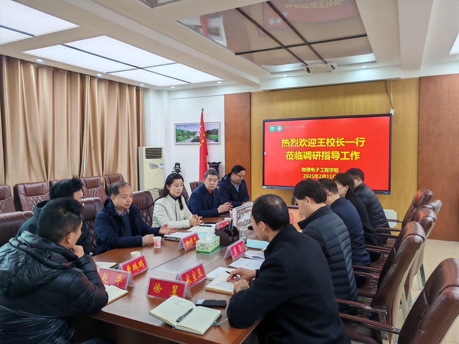 2月15日下午,副校长王娟带领教务处处长李宝峰、教育教学评估中心主任余国忠、教务处副处长周学勇及教务处综合管理科科长曹鹏鹏一行5人莅临十大电子博彩平台导航网站 ,就春季教学和电子信息工程专业认证工作进行调研与指导。电子博彩导航 分党委书记方明科、院长龚克、分党委副书记张丽、副院长刘墨林、副院长宋宣玉、电子科学技术系主任赵华及教学秘书徐昱参加座谈。会议由方明科主持。