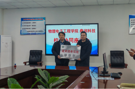 龚克向河南省鼎润科技实业有限公司授予了“信阳师范大学就业创业基地”的牌匾。