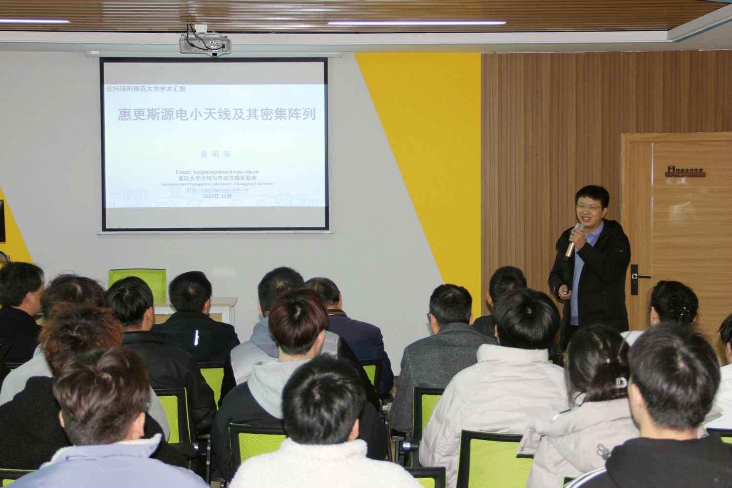 12月2日,重庆大学唐明春教授应邀来十大电子博彩平台导航网站 讲学,在理科楼507室作了一场题为“惠更斯源电小天线及其密集阵列”的学术报告,部分老师及研究生聆听了报告。报告会由副院长龚克主持。