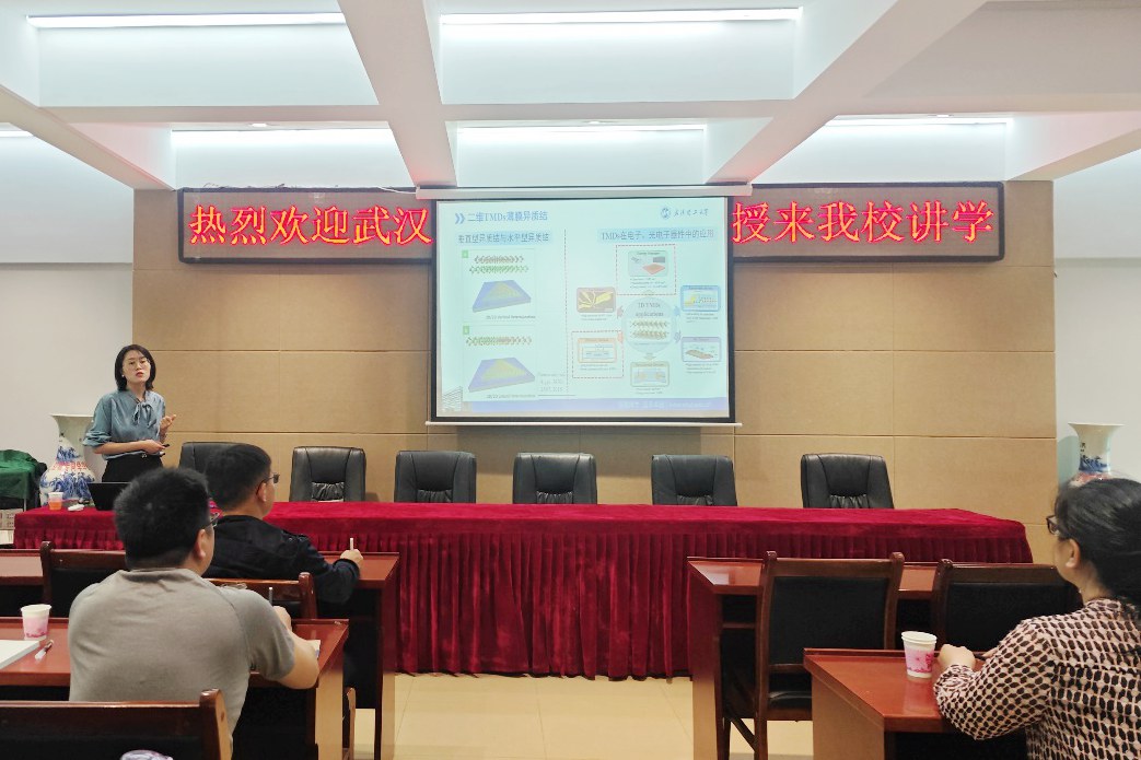 5月12日,应电子博彩导航 邀请,武汉理工大学丁瑶教授来十大电子博彩平台导航网站 讲学,在理科楼会议室作了题为“能带工程与二维半导体薄膜材料”的学术报告。电子博彩导航 教师、研究生及本科生聆听了报告。报告会由副院长刘墨林主持。