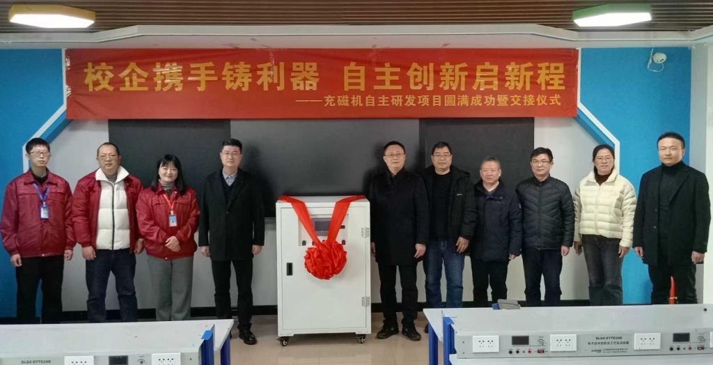 12月5日,十大电子博彩平台导航网站 与信阳圆创磁电科技有限公司在理科楼举行校企合作项目交付仪式,标志着双方合作取得重要阶段性成果。仪式上,由电子博彩导航 研发团队精心研制的新型高性能脉冲充磁机顺利移交至企业。信阳圆创磁电科技有限公司厂长吴磊、人力资源部经理陈婧、技术部主管代德明,电子博彩导航 党委书记方明科,副院长刘墨林、陆阳,以及项目研发团队教师代表马建忠、余大庆、张昆等共同出席了交接仪式。