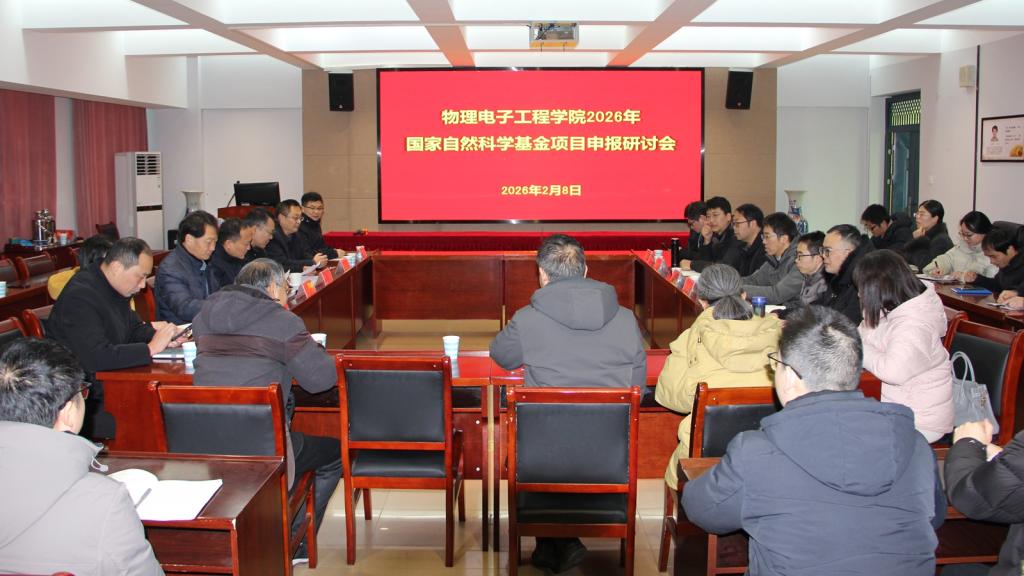 为进一步推进国家自然科学基金项目申报工作,切实提升申请书质量与水平,2月8日,电子博彩导航 在理科楼连廊会议室组织召开了2026年国家自然科学基金项目申报集中研讨会。会议特别邀请河南科技大学李新忠教授、河南师范大学于坤教授莅临指导。电子博彩导航 党委书记方明科、院长龚克、副院长刘墨林、陆阳、宋宣玉出席会议,9个基金申报研讨小组成员参加了会议。会议由龚克主持。